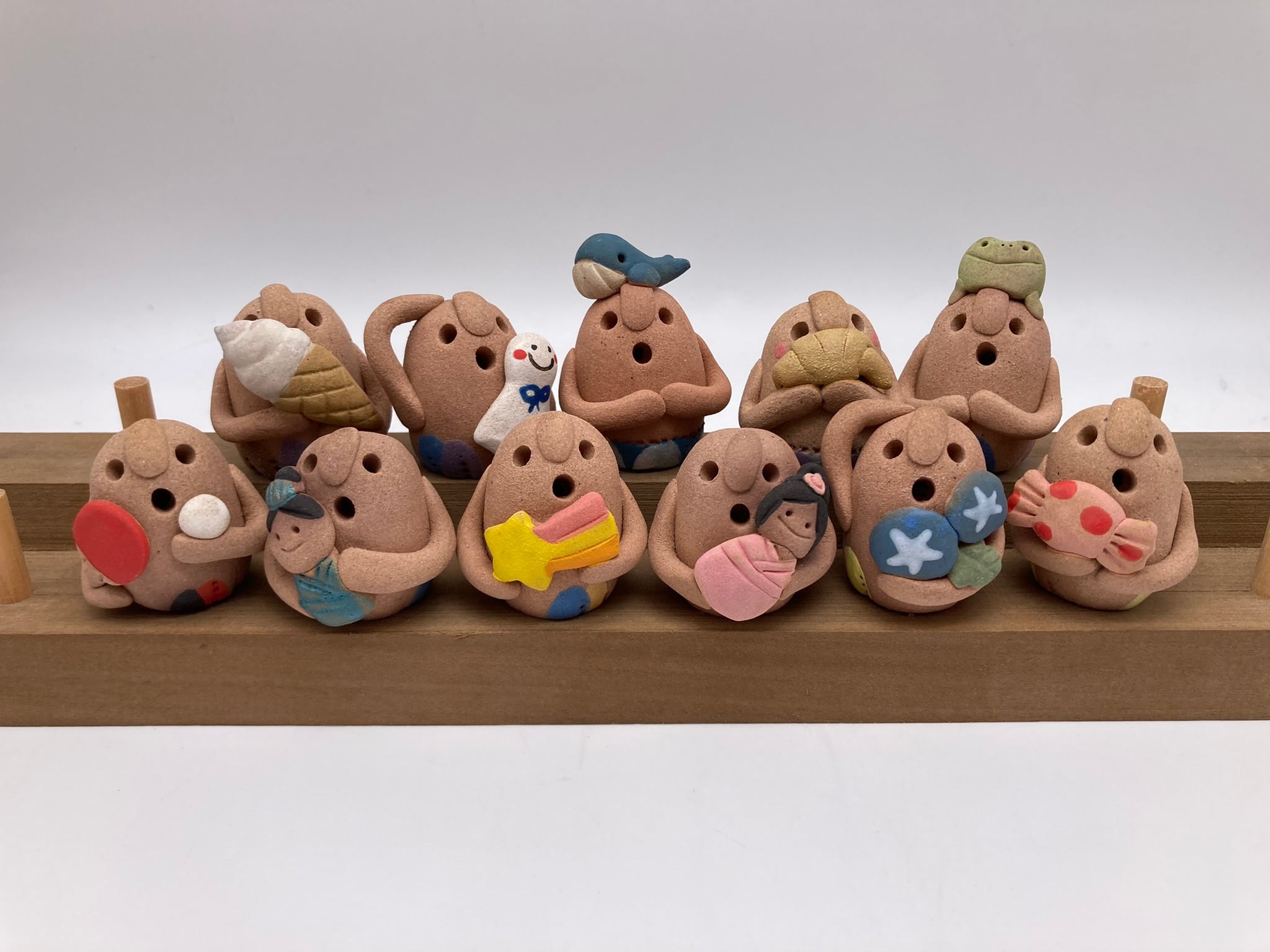 季節によって違うアイテムを持ったはにわ達は、表情やしぐさ、模様などが違います。